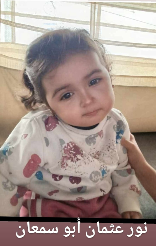 تجلس سمر إسماعيل حماد (أمّ نور) إلى جوار سرير ابنتها، الطفلة نور عثمان أبو سمعان، ترفع كفّيها إلى السماء وتقول بصوتٍ متعبٍ يختلط بالدموع: