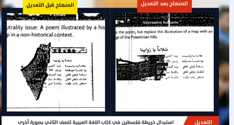 ووفقا للمستندات والوثائق، فإن عمليات الحذف والتعديل ترتكز على ثلاث قضايا هي: "العنف" بقصد (المقاومة)، و"الجندر" بقصد (الاختلاط)، وإلغاء ذكر القضايا السياسية التي تتعلق بالثوابت الفلسطينية.