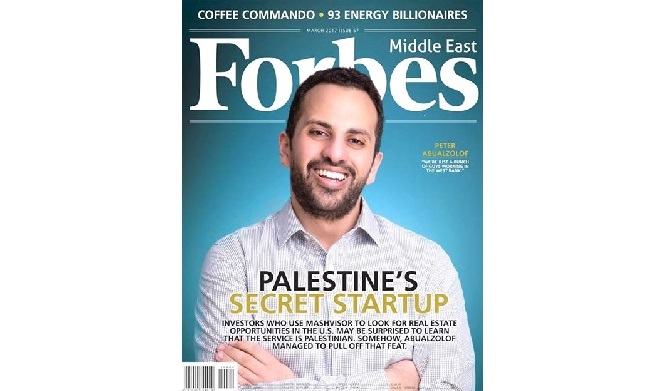 تصدّرت صورة المبادر الفلسطيني الشاب بيتر أبو الزلف، غلاف المجلة الأميركية "فوربس" الشّرق الأوسط، حيث تتحدّث عن تجربة الشاب الفلسطيني في تأسيس شركة "ماشفايزور Mashvisor".