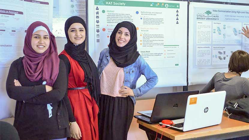 صممت ثلاث طالبات فلسطينيات موقعاً للتواصل الاجتماعي يساعد طلبة الجامعة وأكاديمييها على التواصل فيما بينهم لتبادل المعلومات والإجابة على الاستفسارات ومعرفة أخبار الجامعة الأكاديمية أولاً بأول.