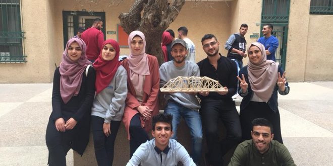 شاركت 33 فرقة من الجامعات الفلسطينية في "بطولة الجسور الخشبية 2017" التي نظمتها الجمعية الأمريكية للمهندسين المدنيين في جامعة النجاح الوطنية في نابلس.