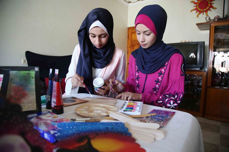 وبدقة متناهية، تحاول ندى شكشك (23 عاماً) أن تمسك بيدها اللوحة الخشبية التي صنعتها لها شقيقتها مها (19 عاماً) من "أعواد الأسنان الخشبية"، لتبدأ بمرحلة الرسم والتلوين التي تستوحيه غالباً من جمال ونقاء الطبيعة، وتوظفه بإبداع متناهٍ على لوحات فنية تسر وتُدهش الناظرين.