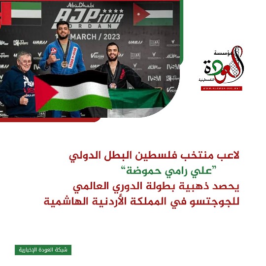 حصل لاعب منتخب فلسطين البطل علي رامي حموضة 19 سنة على ذهبية بطولة الجوجتسو وزن 77 كغ، والتي أقيمت بمدينة عمان في المملكة الأردنية الهاشمية، بمشاركة 15 دولة، وبرعاية كريمة من الاتحاد الإمارتي للجوجتسو.