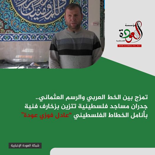 تمزج بين الخط العربي والرسم العثماني.. جدران مساجد فلسطينية تتزين بزخارف فنية بأنامل الخطاط الفلسطيني "عادل فوزي عودة"