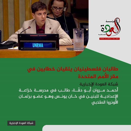 طالبان فلسطينيان يلقيان خطابين في مقر الأمم المتحدة