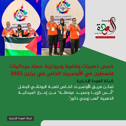 "خمس ذهبيات وفضية وبرونزية" حصاد ميداليات فلسطين في الأولمبياد الخاص في برلين 2023