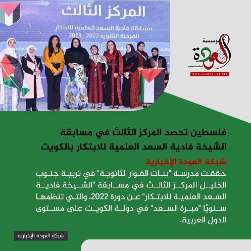 فلسطين تحصد المركز الثالث في مسابقة الشيخة فادية السعد العلمية للابتكار بالكويت