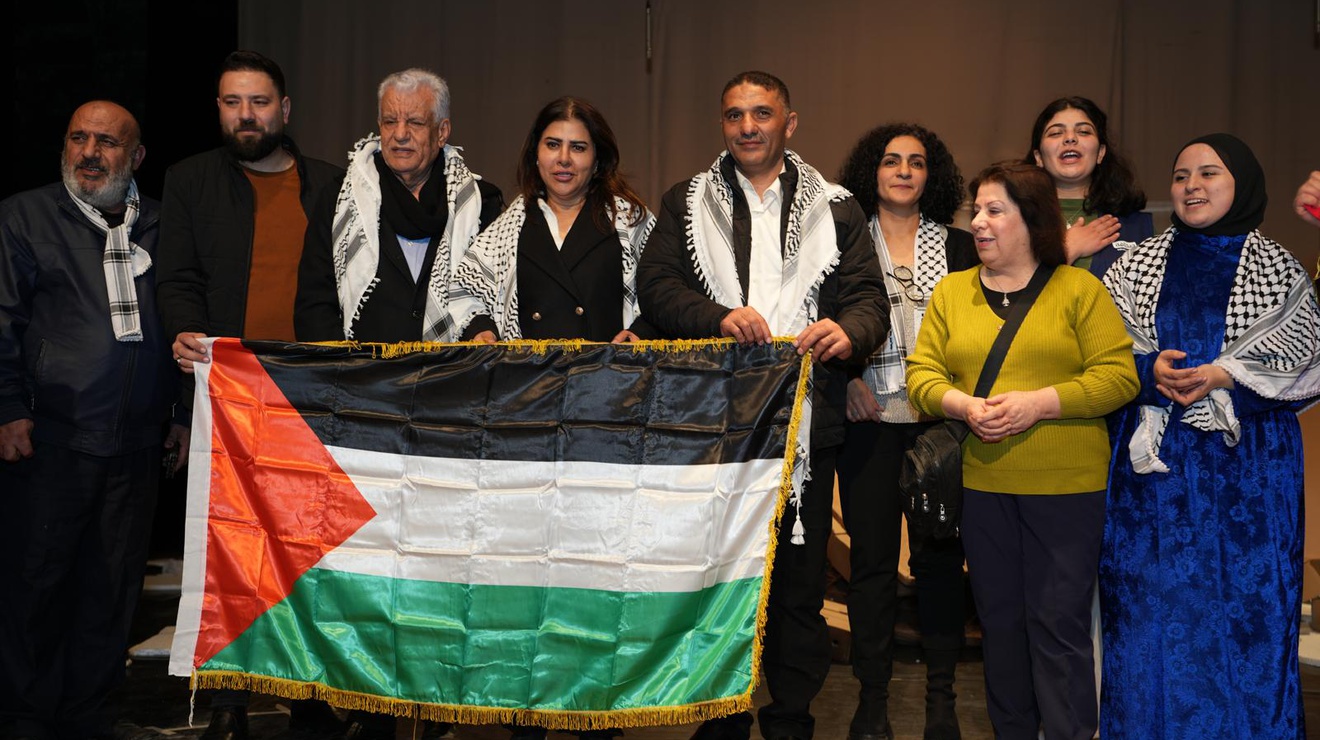 وركّز العرض المسرحي "هنا فلسطين"، على الحياة اليومية للشعب الفلسطيني والأسرة الفلسطينية في ظلّ مضايقات الاحتلال، كما تطرّق للموروث الفني والثقافي.