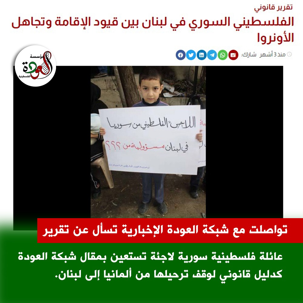 وأعربت العائلة عن أملها في أن يسهم هذا المقال، الموثق بالحقائق والبيانات، في إعادة النظر القضائي بقرار الترحيل، نظراً لكون الترحيل إلى لبنان يعني الدخول في واقع قانوني هش قد يُعرّضها لخطر حقيقي.