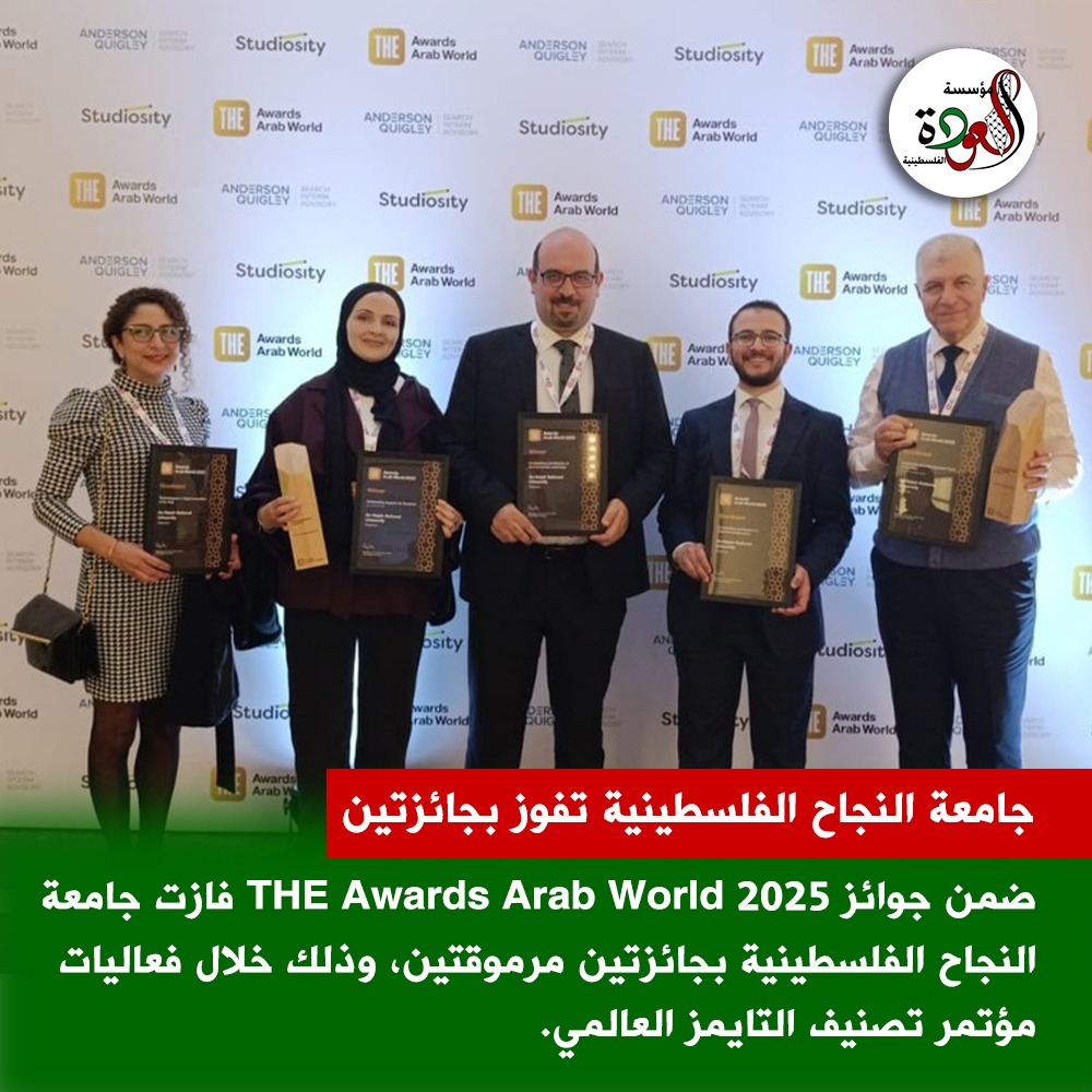 فازت جامعة فلسطينية بجائزتين مرموقتين ضمن جوائز THE Awards Arab World 2025، وذلك خلال فعاليات مؤتمر تصنيف التايمز العالمي.