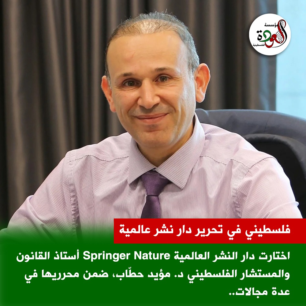 اختارت دار النشر العالمية Springer Nature أستاذ القانون والمستشار الفلسطيني د. مؤيد حطّاب، ضمن مجتمع المراجعين الأكاديميين لديها بصفة Reviewing Editor في مجالات القانون والعلوم الاجتماعية.