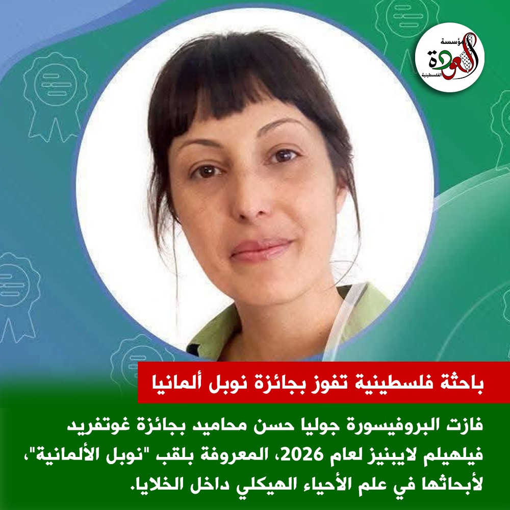 فازت البروفيسورة جوليا حسن محاميد بجائزة غوتفريد فيلهيلم لايبنيز لعام 2026، وهي أرفع جائزة بحثية في ألمانيا والمعروفة عالمياً بلقب "نوبل الألمانية"، وذلك تقديراً لإسهاماتها المتميزة في مجال علم الأحياء الهيكلي داخل الخلايا.
