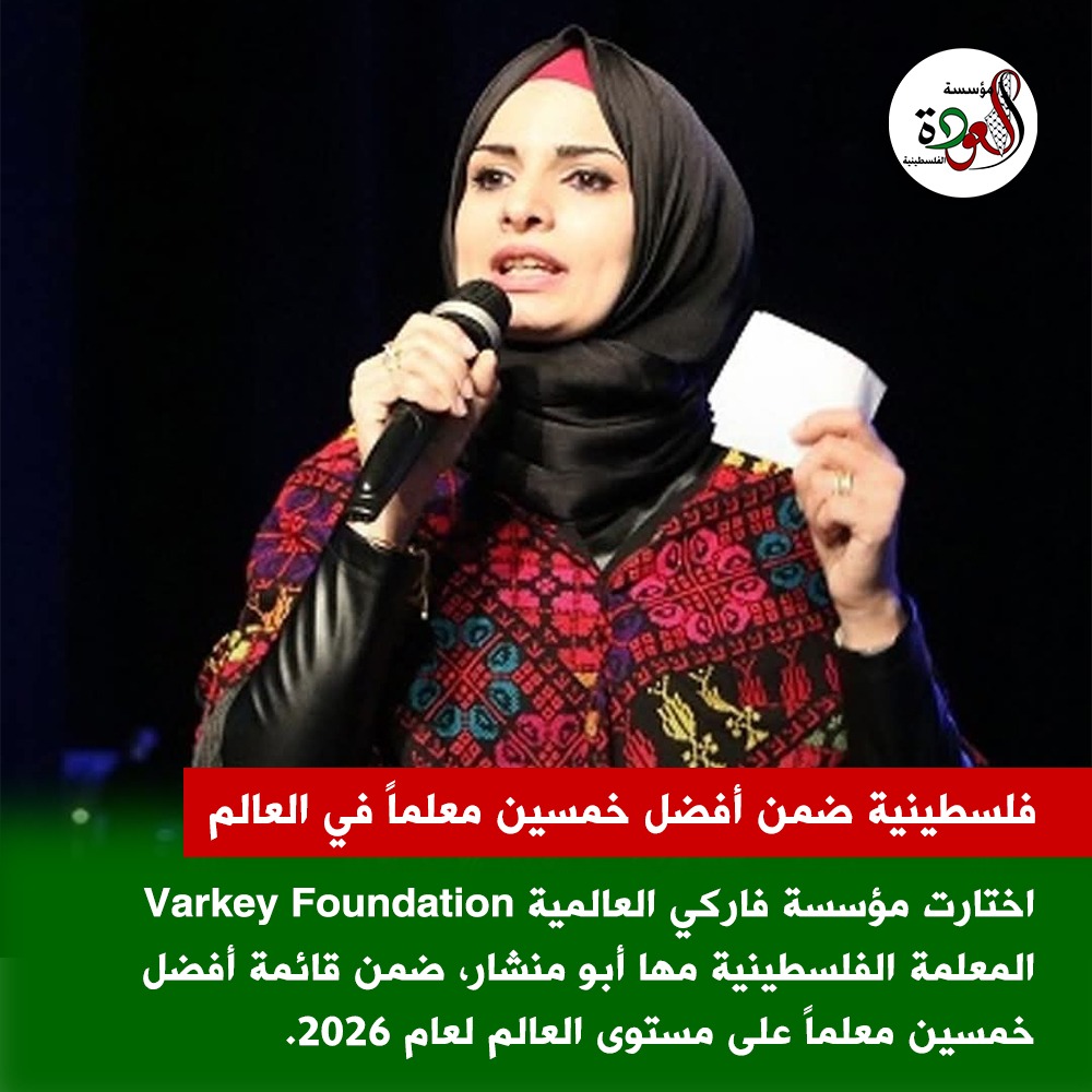 اختارت مؤسسة فاركي العالمية Varkey Foundation المعلمة الفلسطينية مها أبو منشار، ضمن قائمة أفضل خمسين معلماً على مستوى العالم لعام 2026 للمنافسة على جائزة أفضل معلم في العالم، المعروفة دولياً بـ«نوبل التعليم».