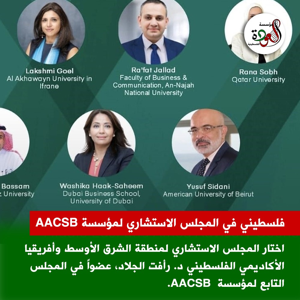 اختيار أكاديمي فلسطيني عضواً في المجلس الاستشاري لمنطقة الشرق الأوسط وأفريقيا بمؤسسة AACSB