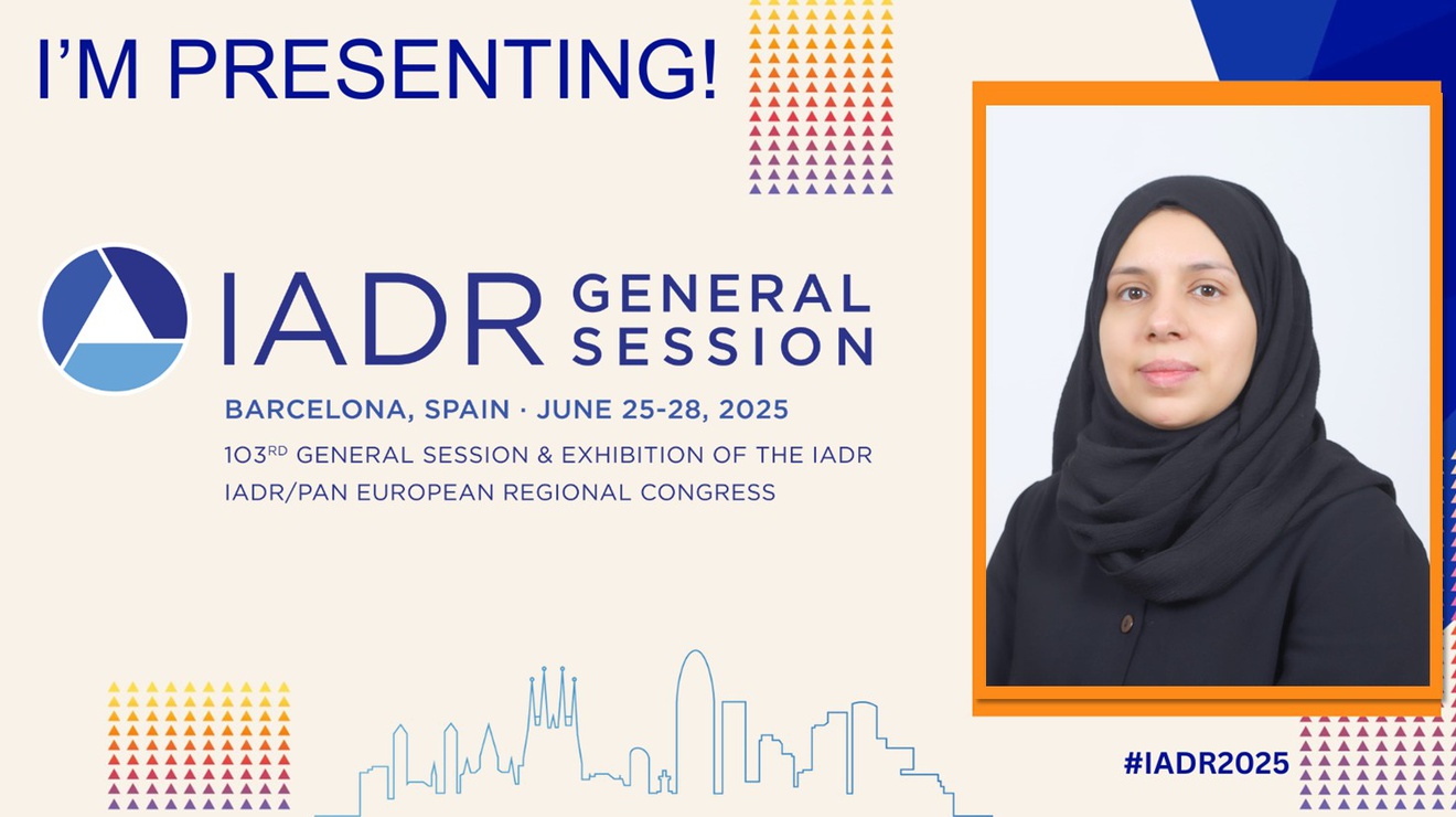 وتمّ اعتماد الملصق، الذي قدّمته الطبيبة المحاضرة في كلية طب وجراحة الفم والأسنان في جامعة النجاح الوطنية، للنشر في المجلة العلمية المحكمة Journal of Dental Research (JDR) التي تُصنف من أعلى المجلات العلمية في هذا المجال.