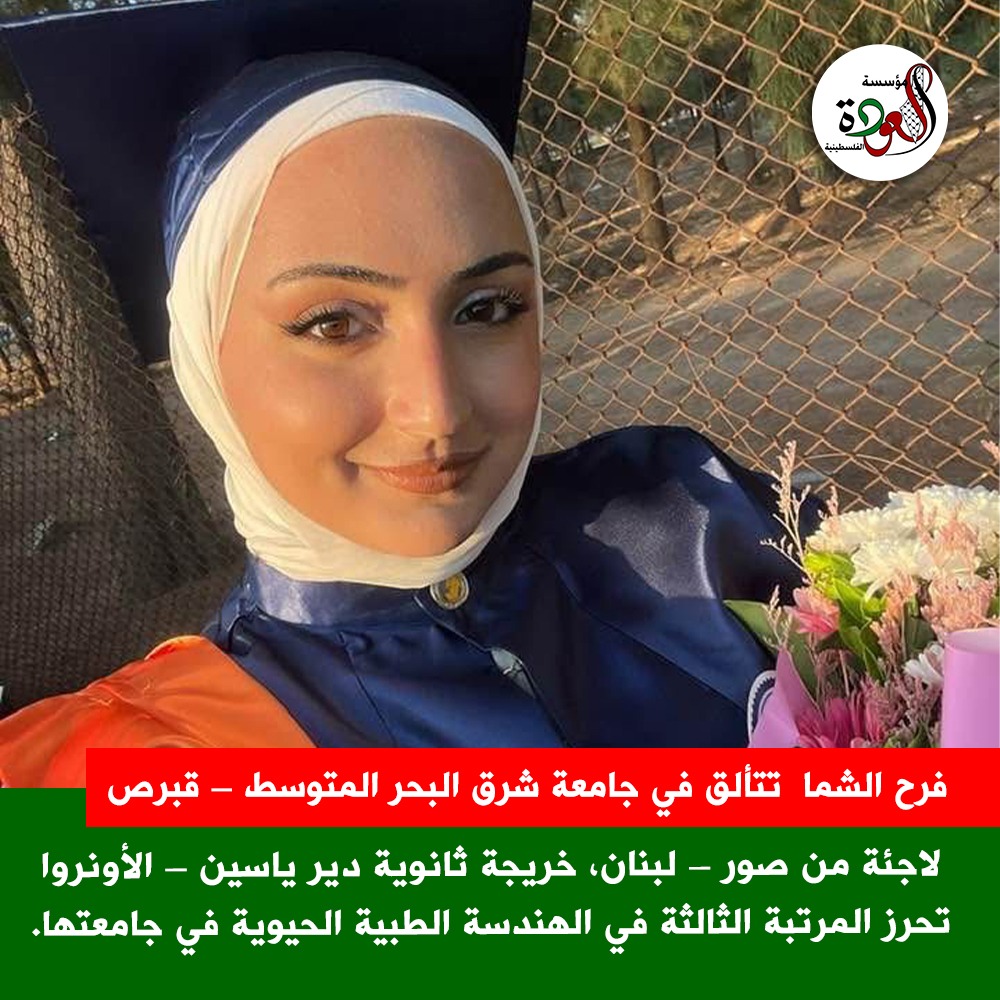 الشابة الفلسطينية "فرح محمد الشما"، اللاجئة في مدينة صور جنوبي لبنان، واحدة من هؤلاء الشباب الذين تميّزوا في دراستهم الأكاديمية رغم قسوة ظروف اللجوء في بلدٍ يواجه أزمات كثيرة.