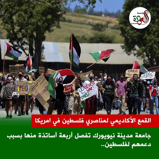 آخر هذا القمع شهدته جامعة مدينة نيويورك في ولاية نيويورك حيث فصلت إدارة كلية بروكلين 4 أساتذة غير متفرغين انتقاماً من نشاطهم العلني المؤيّد لفلسطين ومعارضتهم للإبادة الجماعية الجارية في قطاع غزة.