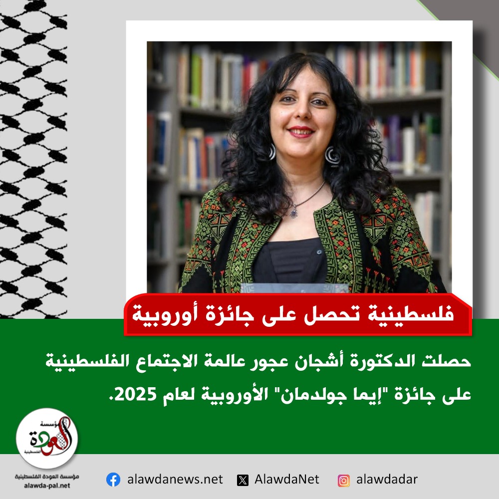 فلسطينية تحصل على جائزة "إيما جولدمان" الأوروبية للبحث في العدالة الاجتماعية لعام 2025