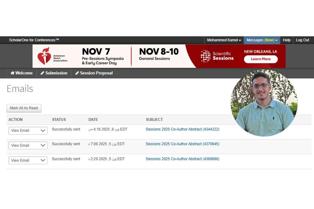 إنجازٌ علميّ مميّز يحققه طالب الطب الفلسطيني "محمد عامر كامل" بعد أن تمّ قبول ثلاثة من أبحاثه في المؤتمر السنوي لجمعية القلب الأميركية (American Heart Association Scientific Sessions 2025).