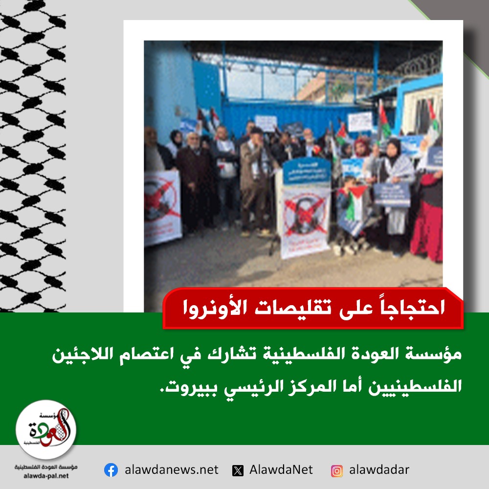 شاركت مؤسسة العودة الفلسطينية في الاعتصام الذي نظمه اللاجئون الفلسطينيون أمام مركز وكالة الأونروا في بيروت، احتجاجاً على تقليص الخدمات في قطاعات التعليم والصحة والشؤون الاجتماعية.