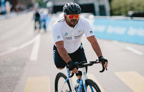حاملاً العلم الفلسطيني درّاج فلسطيني يشارك ببطولة العالم لركوب الدراجات لذوي الاحتياجات الخاصة في بلجيكا