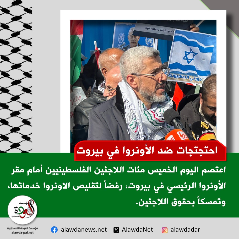 بدعوة من لجنة الدفاع عن حقوق اللاجئين الفلسطينين في لبنان والحراك الفلسطيني المستقل ولجنة المهجرين الفلسطينين من سوريا وبمشاركة واسعة من الفعاليات والنشطاء الفلسطينيين اعتصم اليوم الخميس مئات اللاجئين الفلسطينيين أمام مقر الاونروا الرئيسي في بيروت، رفضا لتقليص الاونروا خدماتها، وتمسكا بحقوق اللاجئين، واعتراضا على قرار الاونروا خصم رواتب الموظفين وتقليص ساعات العمل.