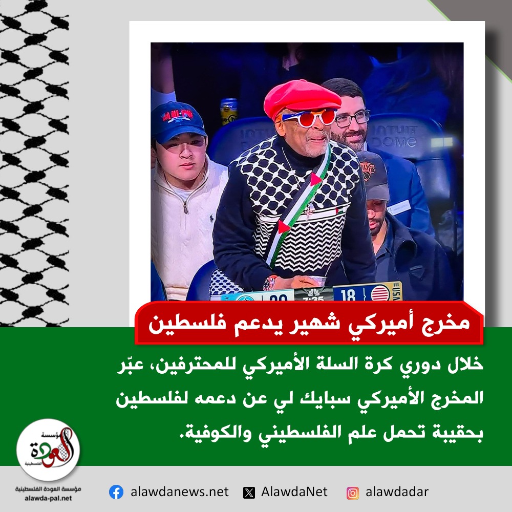 عبّر المخرج السينمائي الأميركي الشهير "سبايك لي" عن دعمه لفلسطين بحمل حقيبة تحمل علم الفلسطيني والكوفية، خلال متابعته مباراة بدوري كرة السلة الأميركي للمحترفين في مدينة لوس أنجلوس