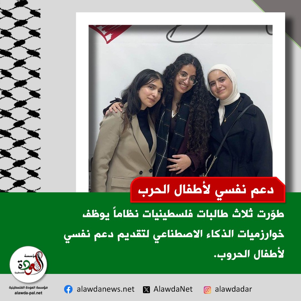 طالبات فلسطينيات يطوّرن نظاماً يوظف الذكاء الاصطناعي لتقديم دعم نفسي للأطفال بمناطق الحروب