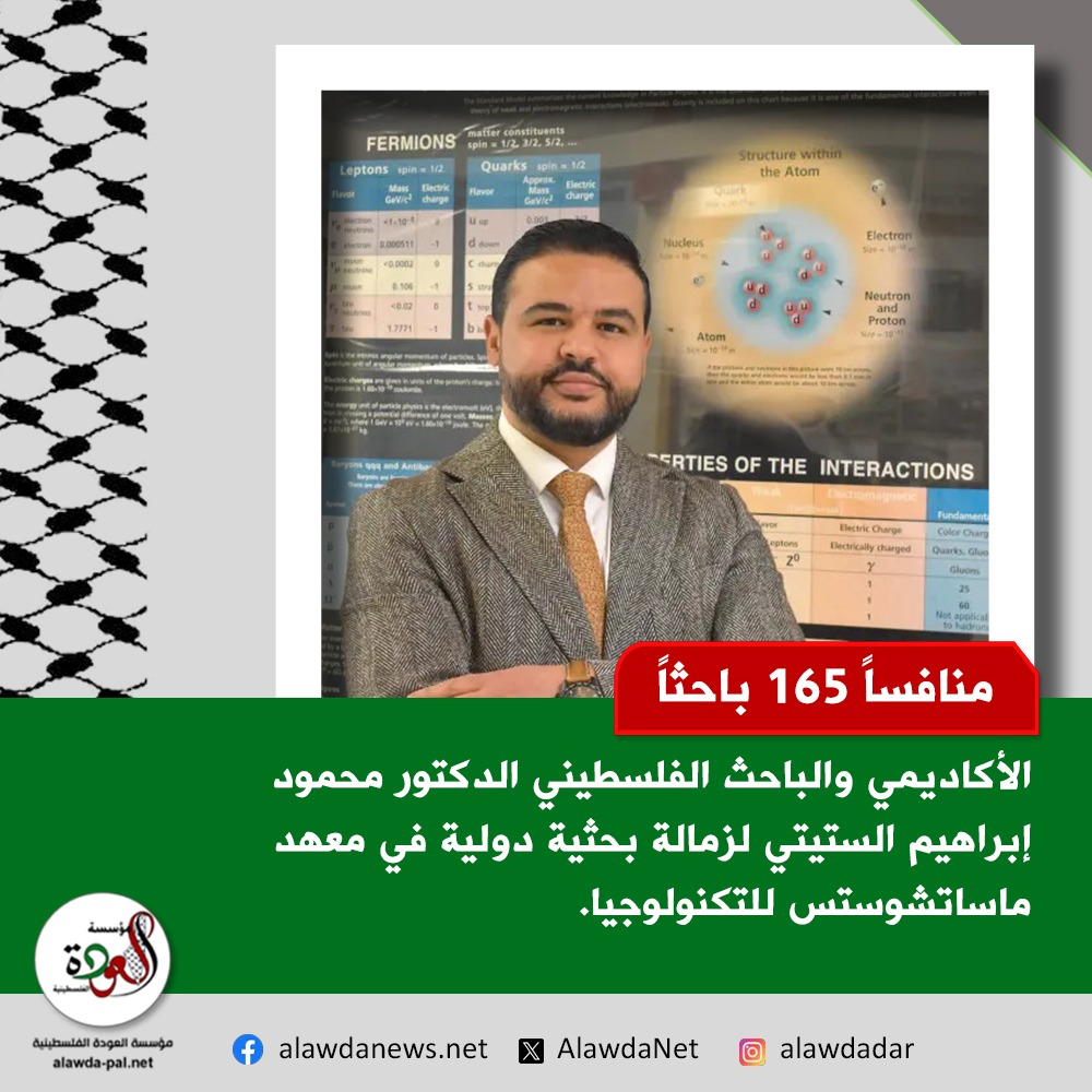 منافساً 165 باحث... اختيار أكاديمي فلسطيني لزمالة بحثية دولية في معهد ماساتشوستس للتكنولوجيا