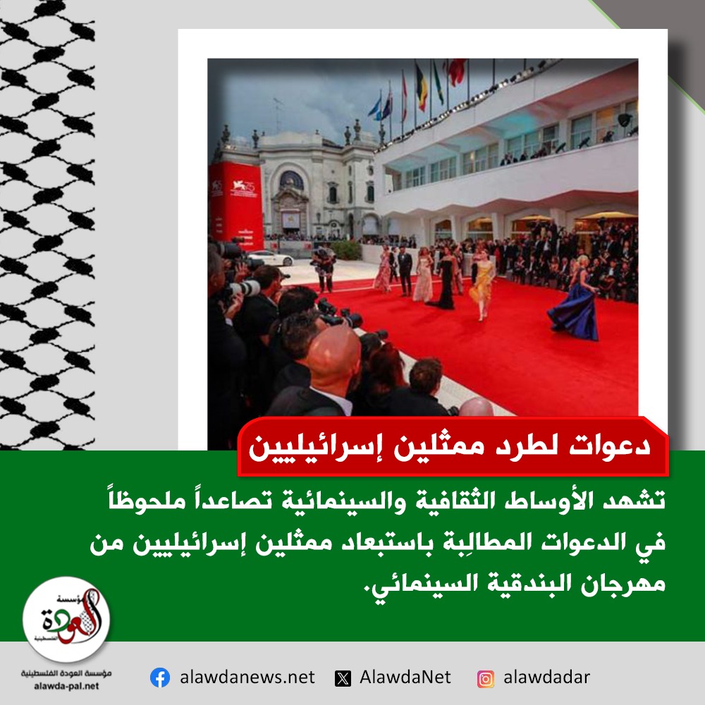 تشهد الأوساط الثقافية والسينمائية تصاعداً ملحوظاً في الدعوات المطالِبة باستبعاد ممثلين إسرائيليين من مهرجان البندقية السينمائي، في ظل حملة يقودها نشطاء وفنانون حول العالم. وبحسب ما يتم تداوله، فقد وقّع أكثر من 1500 من صنّاع الأفلام والمتخصصين في المجال السينمائي على رسالة مفتوحة تدعو إدارة المهرجان إلى سحب الدعوات الموجهة لعدد من الممثلين الإسرائيليين.