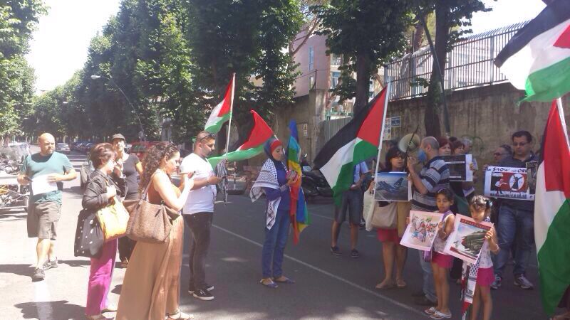 وفي إيطاليا نظم التجمع الفلسطيني في إيطاليا اعتصاماً في مدينة بيزا تنديداً بالعدوان الصهيوني على غزة.