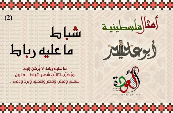 #أمثال_فلسطينية#أبو_عايد(36)اللي بـســــراجـه زيـت، بـيـضـويمثلٌ يُضرب في اتجاهين:1- للقادرين على فعل شيء ولكنهم كسالى ومتقاعسون. فيُقصد به: اخدم نفسك بنفسك.2- للفقراء والعاجزين الذين لا حيلة لهم، فإذا طلب منهم أحد شراء شيء أو القيام بأي فعل، يقولونه بمعنى (العين بصيرة واليد قصيرة، وما باليد حيلة). |