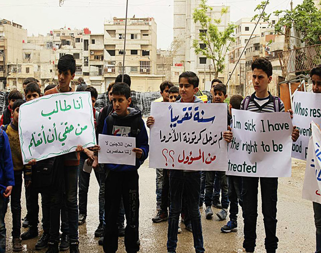 أطفال اليرموك يطالبون بالتحرك العاجل لحل أزمة المخيم