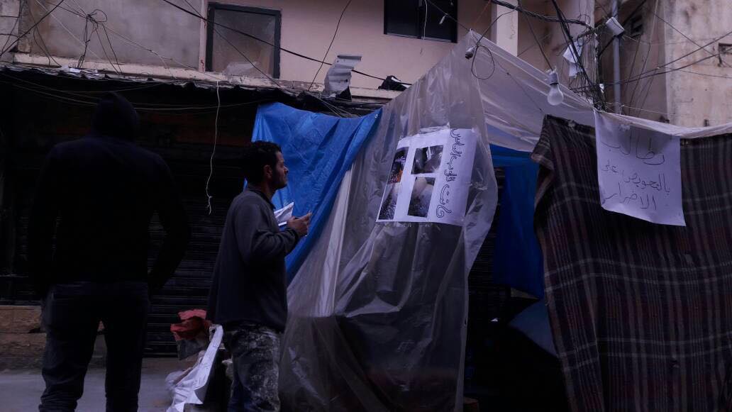 وفي وقتٍ نصب فيه الأهالي الخيم في الشارع الفوقاني، لا تزال الطريق مقفلةً في الشارع مطالبين المعنيين بدفع تعويضات مالية فورية عن الأضرار التي لحقت بممتلكاتهم من منازل ومحال تجارية.