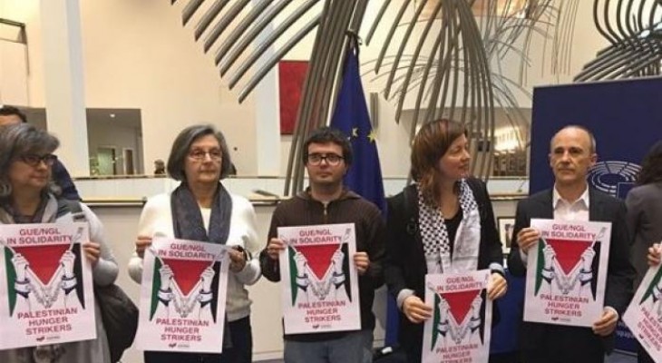 نظم عدد من أعضاء البرلمان الأوروبي من عدة دول أوروبية وقفة تضامنية مع الأسرى الفلسطينيين المضربين عن الطعام في سجون الاحتلال منذ 16 يوماً.