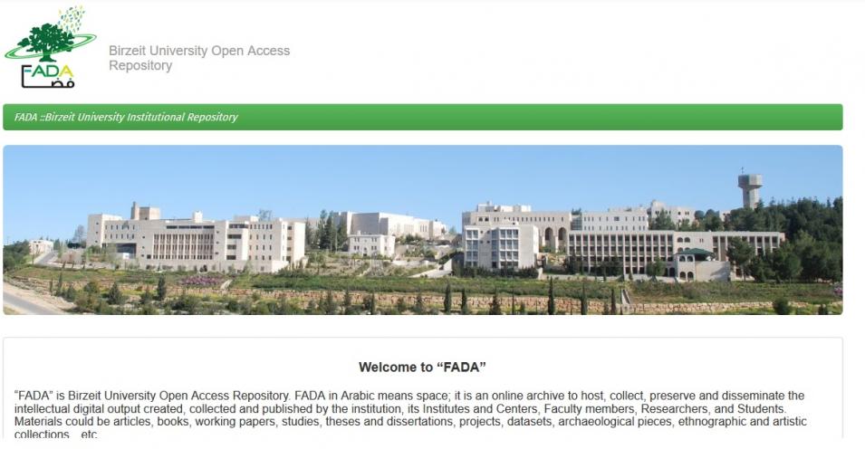 ويعتبر المستودع الرقمي للجامعة "فضا" أحد المستودعات المؤسساتية الرائدة على المستوى المحلي والذي لا زال قيد التطور والتوسع. حيث تم إطلاق منصة "فضا" في العام الماضي في مكتبة جامعة بيرزيت بهدف تحميل وعرض منشورات أساتذة وطلبة الجامعة البحثية والتعليمية من خلال الفضاء الرقمي.