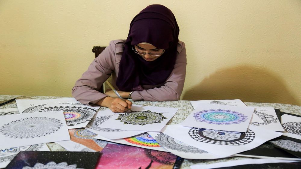 تمسك ولاء صيام ورقةً بيضاء في يدها وتحاول من خلالها رسم خطوط متعرجة ومتداخلة للخروج بلوحة فنية جميلة تستطيع من خلالها إتقان هواية الرسم التي رافقتها منذ الطفولة، ورغم دراستها في قسم اللغة الإنجليزية في الجامعة الإسلامية إلا أن ذلك لم يبعدها عن الرسم؛ عن تجربتها مع " الماندالا" كان لفلسطين هذا الحديث معها.