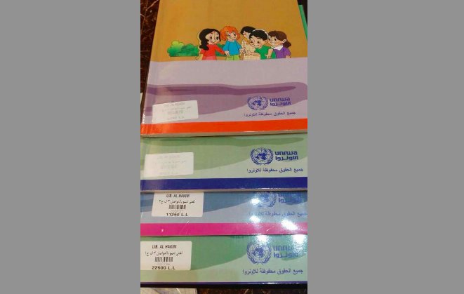 وكان أحد أولياء التلاميذ، المسجل في "مدرسة الإيمان" الخاصة في منطقة برج البراجنة، قصد إحدى المكتبات لشراء الكتب المقررة لهذا العام، وقد اكتشف أن أربعة منها مختومة بشعار "الأونروا" علماً بأنها توزع مجاناً على الطلبة الفلسطينيين في لبنان.