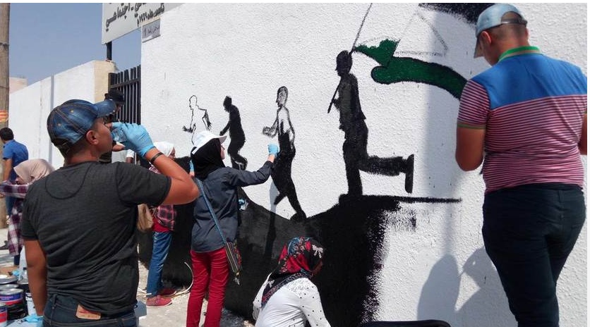 على أنغام الأغنية السويديّة Leve Palestina الداعمة للقضيّة الفلسطينيّة، أطلق لاجئون فلسطينيّون في مخيّم الشهيد عزمي المفتي (100 كلم شمال العاصمة عمّان) مبادرة شعبيّة في 3 أيلول/سبتمبر الماضي تحت عنوان 'ارسم فلسطين على جدران المخيّم'.