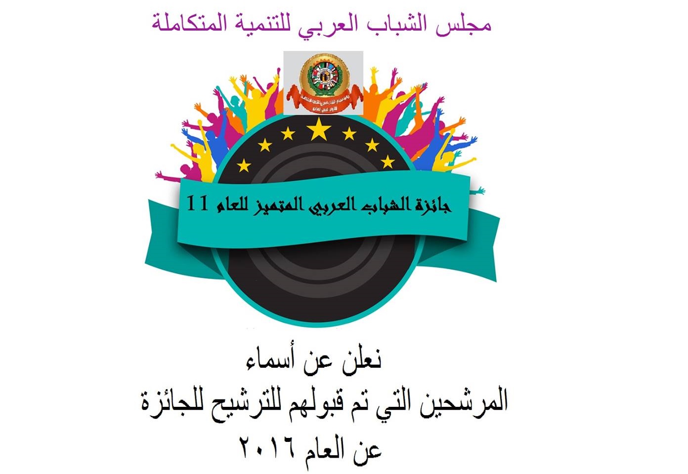 يشهد يوم غد الخميس موعداً لإعلان أسماء الفائزين بجائزة مجلس الشباب العربي للتنمية المتكاملة في عامها الحادي عشر، تحت رعاية جامعة الدول العربية وبالتعاون والتنظيم المشترك بين مجلس الشباب العربي للتنمية المتكاملة.