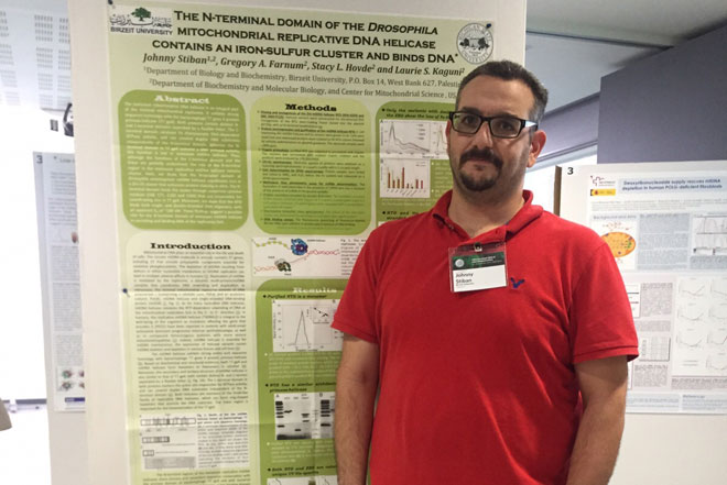 وخلال المؤتمر، قدّم رئيس دائرة الأحياء والكيمياء الحيوية في جامعة بيرزيت د. جوني، عرضاً شفهياً شرح فيه بحثه العلمي حول تأثير هرمونات الأنسولين والجلوكاجون على فسفرة إنزيمات "السيراميد سنثيز ceramide synthase" وأثرها على موت الخلايا السرطانية.