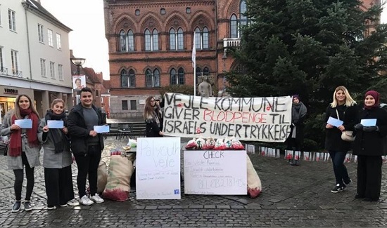 وجاء ذلك خلال وقفةٍ للتجمع أمام المجلس البلدي في مدينة فايله الدنماركية، حيث تحدث المعتصمون مع المرشحين لانتخابات البلدية من خمسة أحزاب مختلفة، حيث عبر المرشحون عن تأييدهم لمقاطعة الاستثمار في المستوطنات الإسرائيلية.