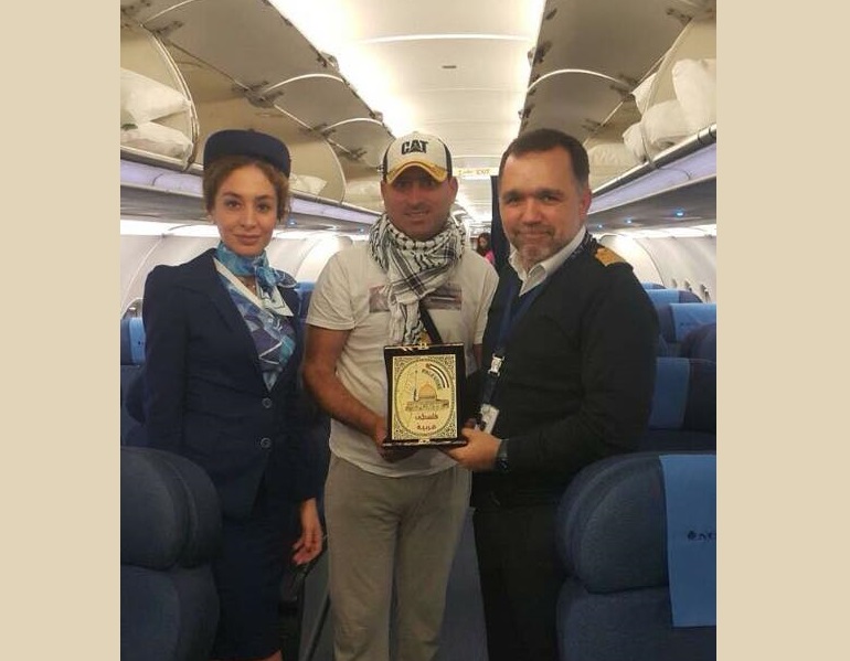 وعلى الفور قام اللاجئ الفلسطيني وليد موعد، من مخيم عين الحلوة للاجئين الفلسطينيين والذي كان مسافراً على متن الطائرة، بإهداء كابتن الطائرة درع القدس شكراً وتقديراً لهذا التضامن الرمزي مع الشعب الفلسطيني.