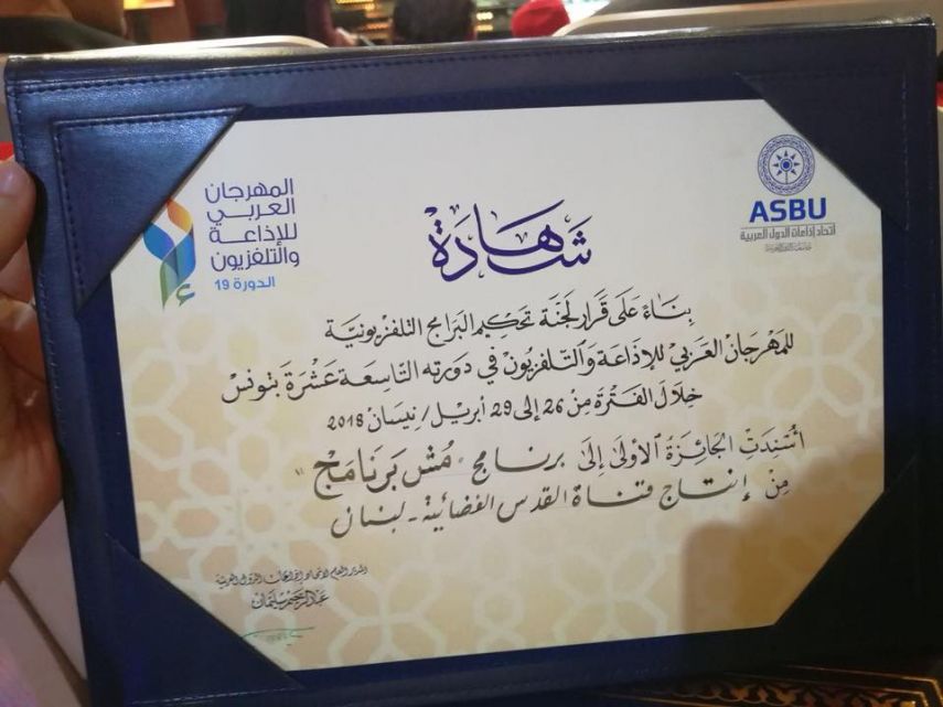فقد حصلت قناة القدس على الجائزة الذهبية الأولى في مسابقة البرامج المنوّعة عن برنامج "مش برنامج" الذي يقدّمه ويخرجه الإعلامي مؤمن الشويخ، الذي قررت إدارة المهرجان أيضاً منحه جائزة الإبداع التلفزيوني.