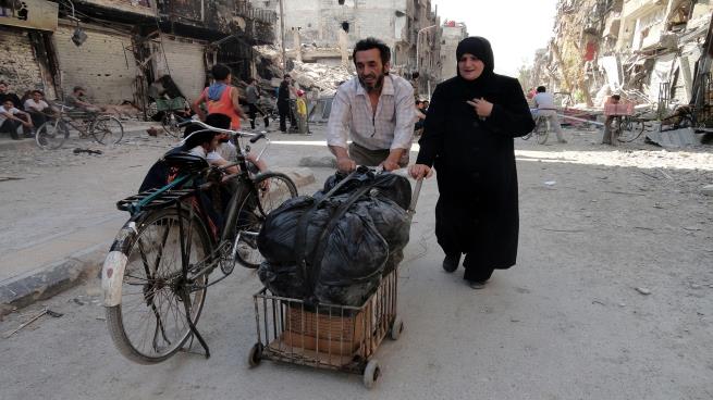 عن هذا الحصار، يقول عهد فوراني، وهو خمسيني من قضاء صفد كان يعمل بائعاً للخضار في مخيم اليرموك، وأمضى أربعين عاماً من عمره بين حاراته، ويستقر الآن وعائلته في شمال حلب: "كان دكاني في حارة فرعية قريبة من شارع شهير يسمى شارع الجاعونة. قبل بدء الحصار الجائر لمخيمنا كنت ككلّ صباح أستيقظ باكراً لأتوجه إلى سوق الهال لشراء البضائع. أعود لأفردها في جوانب الدكان وأرشها بالمياه، مستمتعاً بالكمية الكبيرة من البضائع التي تزين دكاني". يكمل فوراني: "كان الجيران، وهم الزبائن نفسهم، إما أقارب لي وإما أصدقاء، وكان الدكان مكان اجتماع بعضنا الصباحي، نشرب الشاي، نتحدث عن كلّ شيء، عن فلسطين، وسورية، والخضار، والفواكه، والأولاد، وعن جمال النساء أحياناً، لكن بعد عام 2013 تغير كلّ شيء تماماً، فالحي محاصر، والدخول والخروج منه ممنوع، رفوف دكاني، كما رفوف كلّ محلات الحي، باتت فارغة، ولم يعد لذهابي إلى الدكان من سبب".