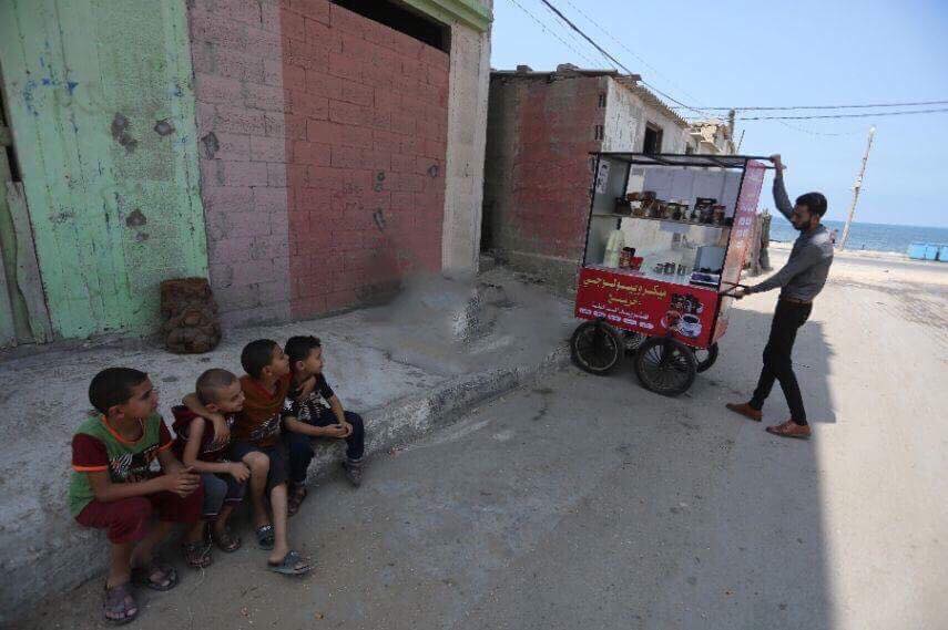 فعلى بوابة جامعة الأزهر بغزة، يقف أمجد كلّ يومٍ أمام عربةٍ جوّالة لبيع المشروبات الساخنة أطلق عليها إسم "خريج ميكروبيولوجي"، في إشارةٍ للتخصص الجامعيّ الذي تخرّج منه مقداد بمعدّلٍ مرتفع قبل عامين من جامعة الأزهر، بالإضافة لعدد من الشهادات العلمية والدورات التي تحصّل عليها؛ للفت الأنظار إلى معاناة الخريجين بغزة.