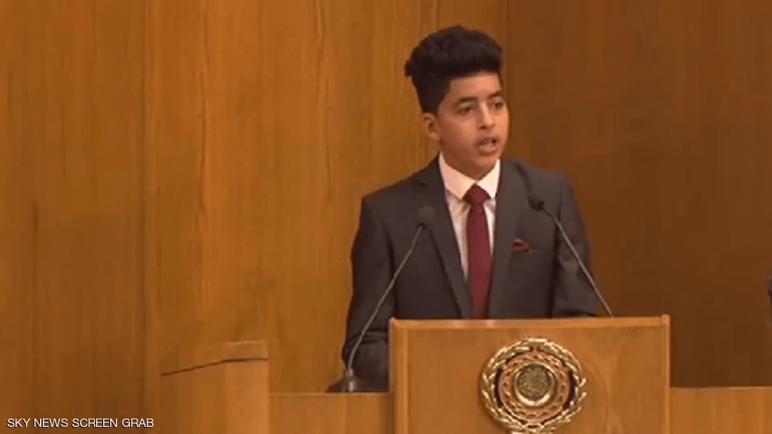 مرةً أخرى، يقف الطالب الفلسطيني أحمد بكر (14 عاماً) على منصةً دوليةٍ أكبر لنقل معاناة اللاجئين الفلسطينيين مع استهداف خدمات وكالة الغوث والتشغيل للاجئين الفلسطينيين "الأونروا".