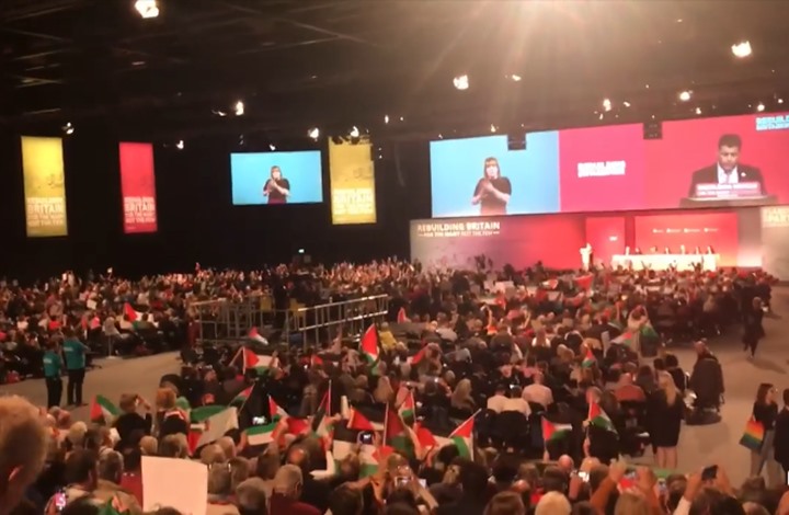 شهد المؤتمر العام لحزب العمال البريطاني، مشهداً غير مسبوقٍ تمّ خلاله رفع الأعلام الفلسطينية من قبل أعضاء الحزب، تزامناً مع طرح عددٍ من المقترحات بخصوص حقوق الفلسطينيين.