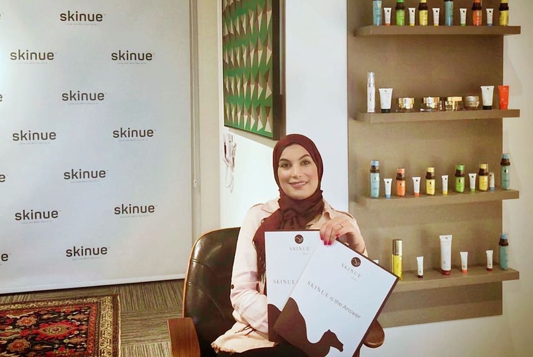 وبوجود مستمثر أساسي واحد معنا، ومع 18 عضو بفريق العمل في الأردن والبرازيل والمملكة المتحدة بالإضافة إلى المكون الرئيسي القادم من مزارع مصنع إنتاج الحليب ” كاميليشيس” بدبي- الإمارات العربية المتحدة، تقوم شركة Skinue بتصنيع المنتجات في مصنع بفرنسا وتقوم بتوزيعها في الولايات المتحدة الأمريكية ( من خلال موقع أمازون Amazon.com) والبرازيل وأستراليا ومجلس التعاون الخليجي وأوروبا. ووفقًا للمؤسِسة، فإن الولايات المتحدة هي أكثر الأسواق التي من الممكن أن تحتل مكانة بارزة بها. “فإنها سوق كبير ومتنوع، حيث يدرك العملاء التكنولوجيات الجديدة والمتقدمة في مجال الرعاية الصحية، فإنهم يميلون إلى تجربة الابتكارات الجديد والغريبة بشكل عام،” وذلك حسب قول العالمة التي تؤمن بإنها يمكنها بناء قاعدة عملاء قوية والتوسع من العالم الجديد.