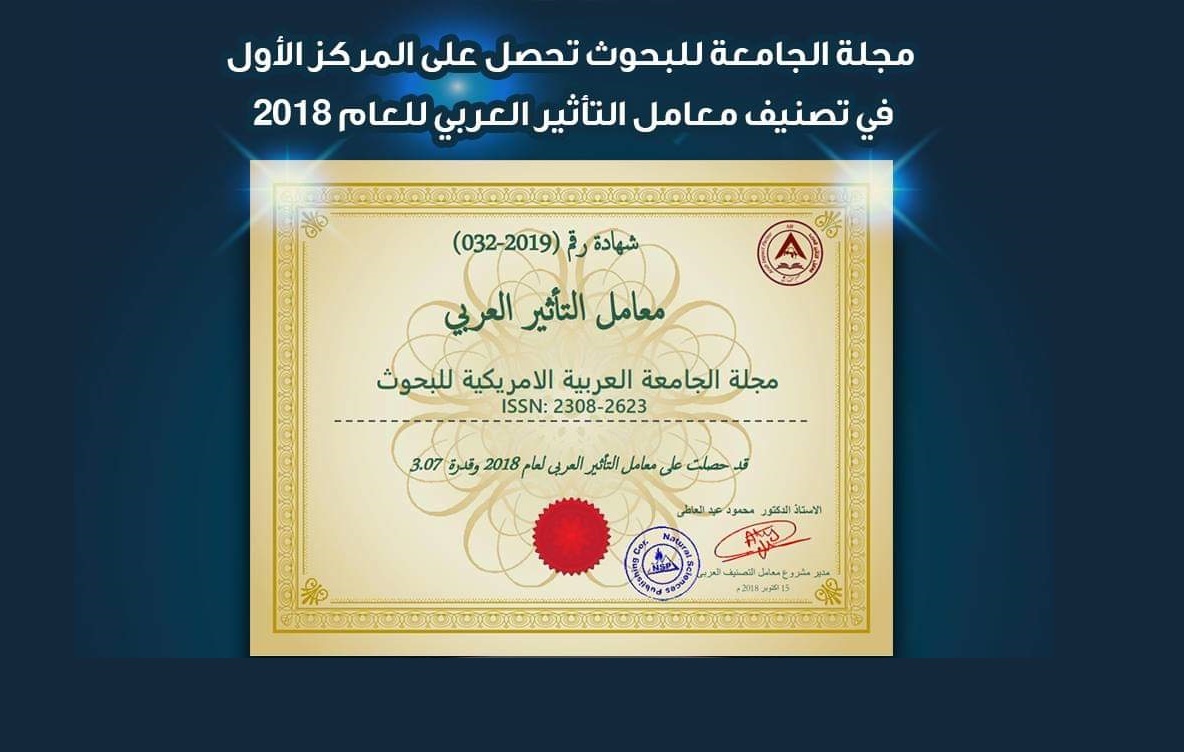 حصلت مجلة الجامعة العربية الأميريكية للبحوث على المركز الأول في تصنيف معامل التأثير العربي للعام "2018 Arab Impact Factor"، حيث حصلت على معامل تأثير 3.07 الأمر الذي يُعدّ إنجازاً كبير للبحث العلمي في فلسطين.